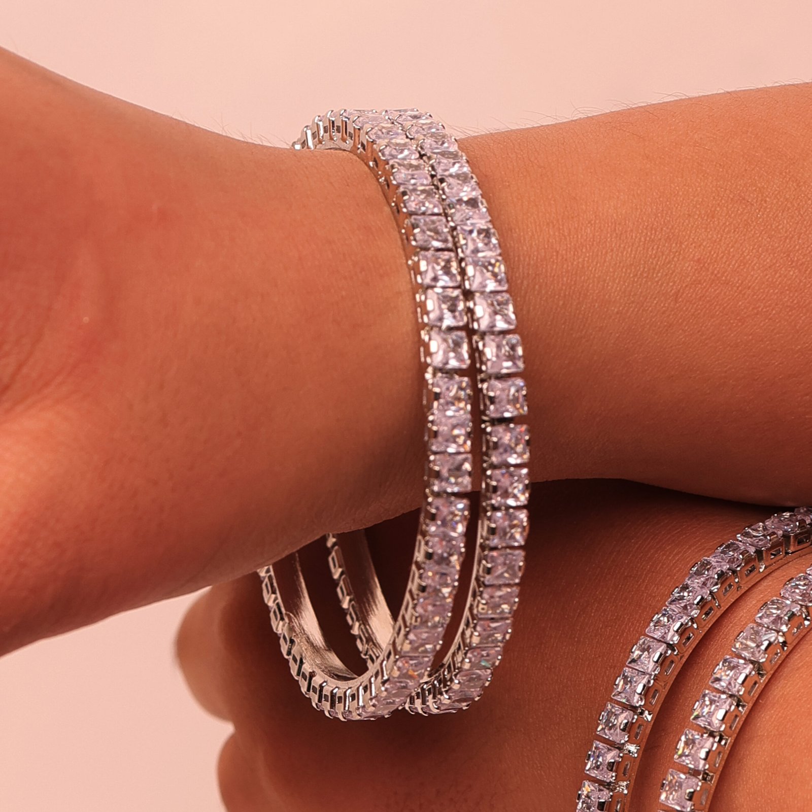 Add a touch of grace to your ethnic and festive outfits with this set of 4 American Diamond bangles. Silver-plated and studded with high-quality white AD stones, these bangles offer a refined and authentic traditional look. Suitable for women and girls, they combine classic Indian aesthetics with contemporary elegance. Ideal for special occasions like weddings, parties, and festivals, or even as a statement accessory for everyday ethnic wear. Crafted for comfort and style, this bangle set is a must-have addition to any jewellery collection.
