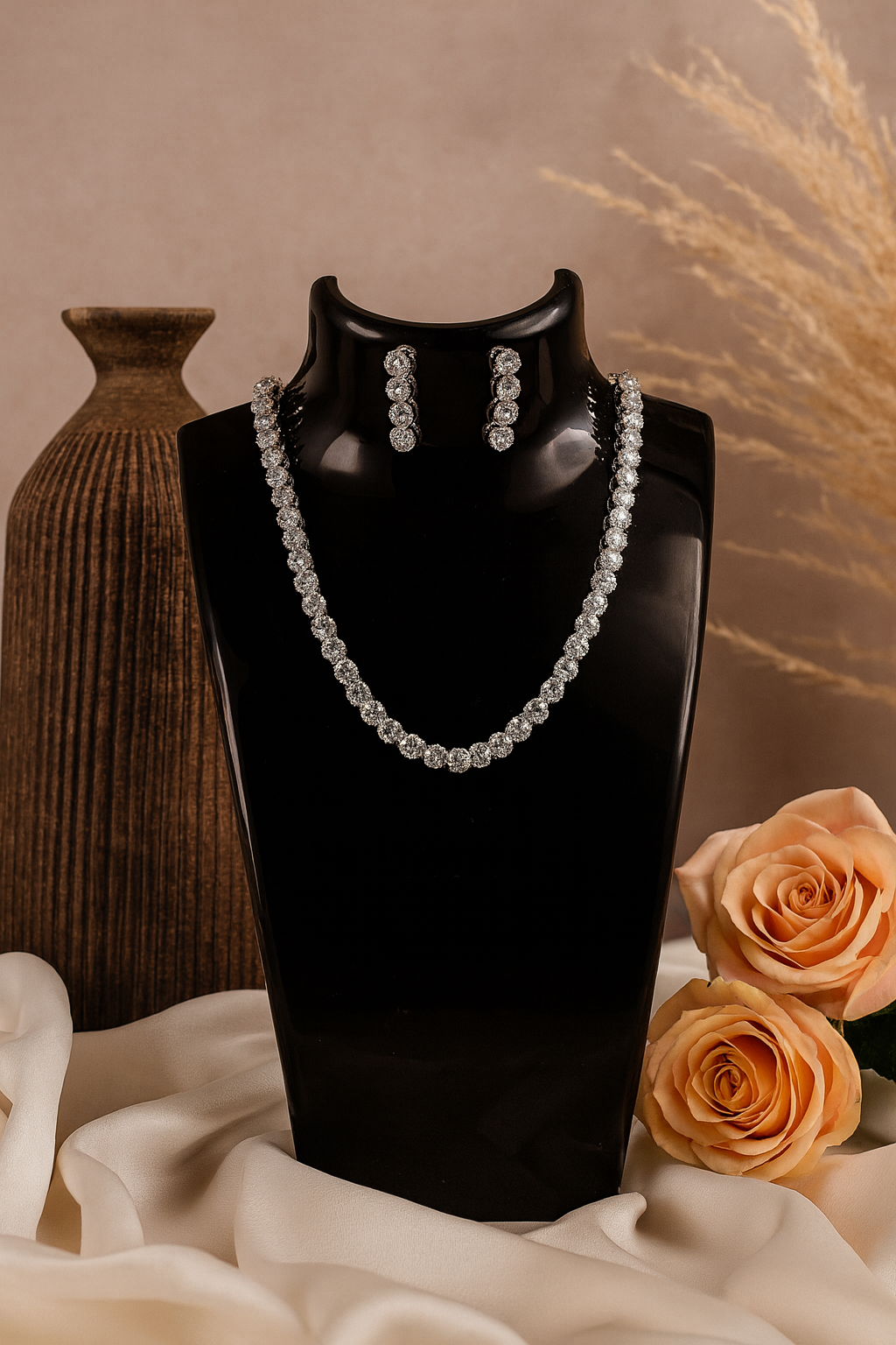 Traditional American Diamond Jewellery Set | Rhodium Plated AD Necklace Set for Women