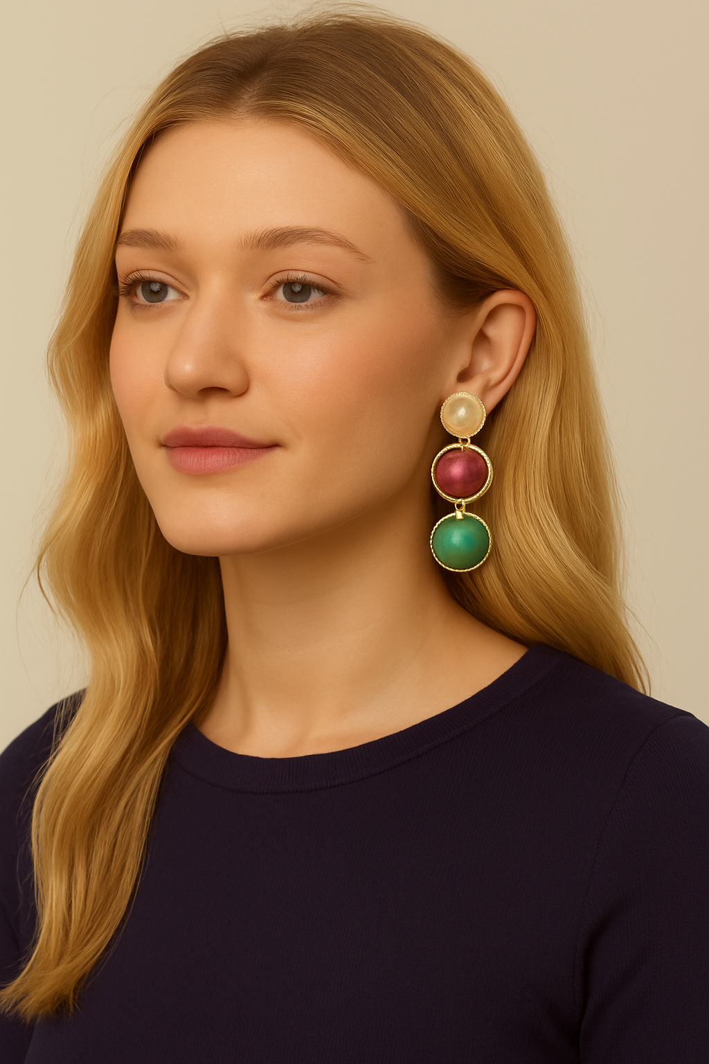 Elegant Triple-Tone Statement Earrings