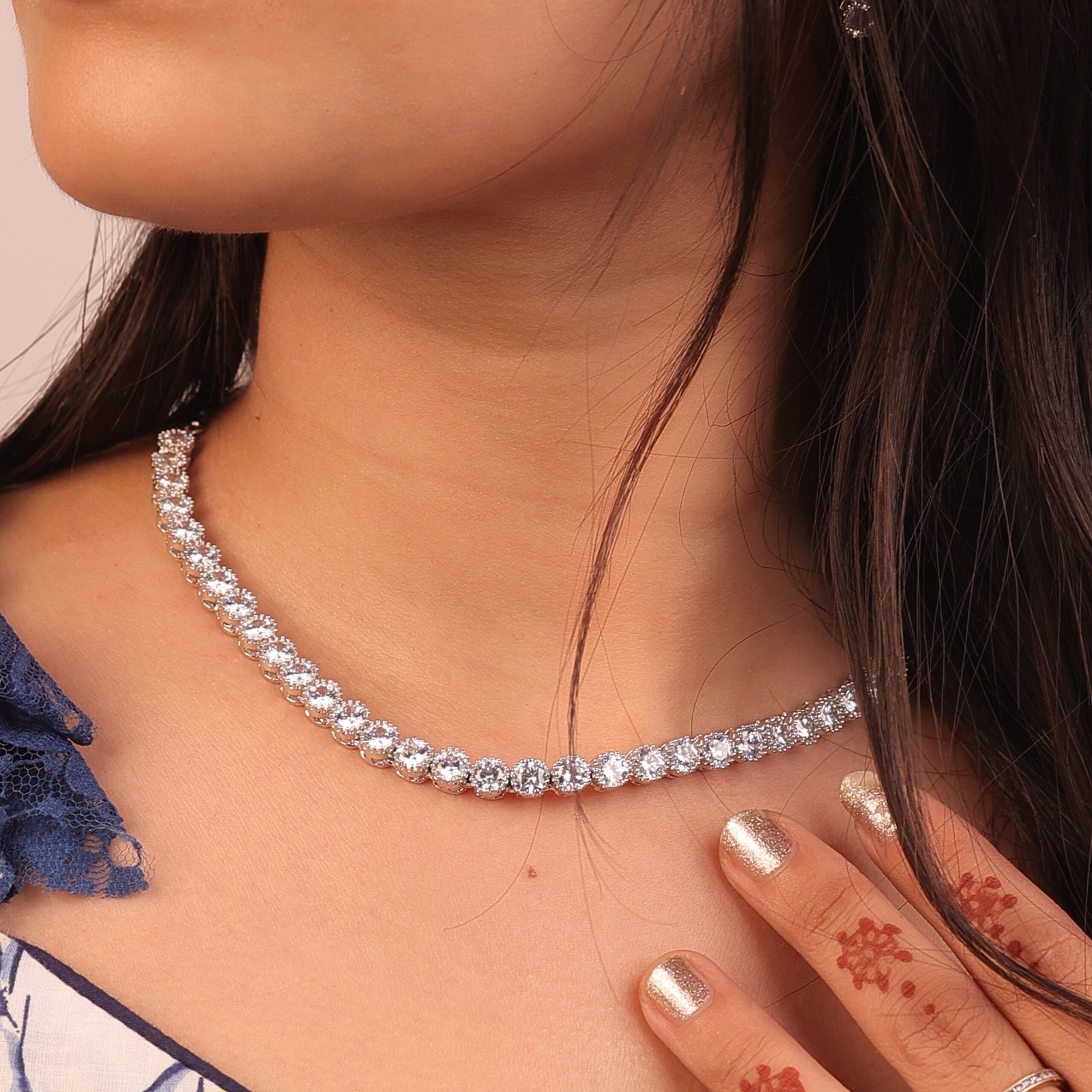 Traditional American Diamond Jewellery Set | Rhodium Plated AD Necklace Set for Women