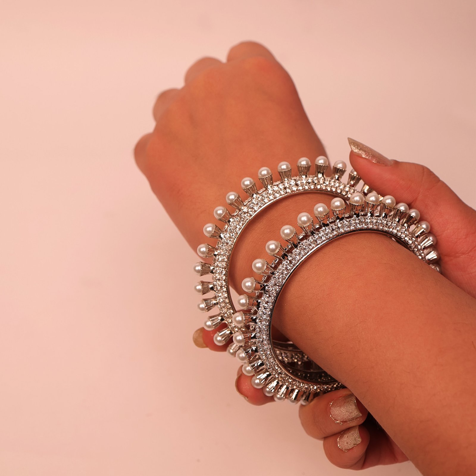 Alloy Metal with Zircon Stone Studded Kada Bangles Set For Women & Girls. This Stylish Bangles Set is a stunning piece that combines traditional Style with modern beauty, capture the essence of a Wedding, Party, Anniversary, Function, Festival or any Occasion. Its is Crafted from high-quality Alloy Metal, Zircon Diamond Stone. It is durable and vibrant colours symbolizes love, passion, and new beginnings.